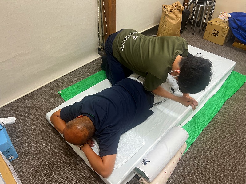 わが社では定期的にカイロプラティックの先生にお越しいただき、社内でカイロプラティックの施術をおこなっています。 社員が施術を受ける際、料金の半額を会社が負担します。おおむね好評で、希望者が毎回4名位施術を受けています。 腰痛・肩の痛み・猫背など、体の不具合の軽減につながっています。