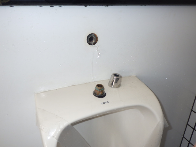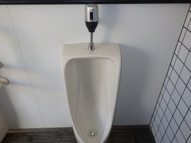 今回は、公園の小便器フラッシュバルブ交換です。既存のフラッシュバルブの流れが悪い為、センサー式のフラッシュバルブに交換します。