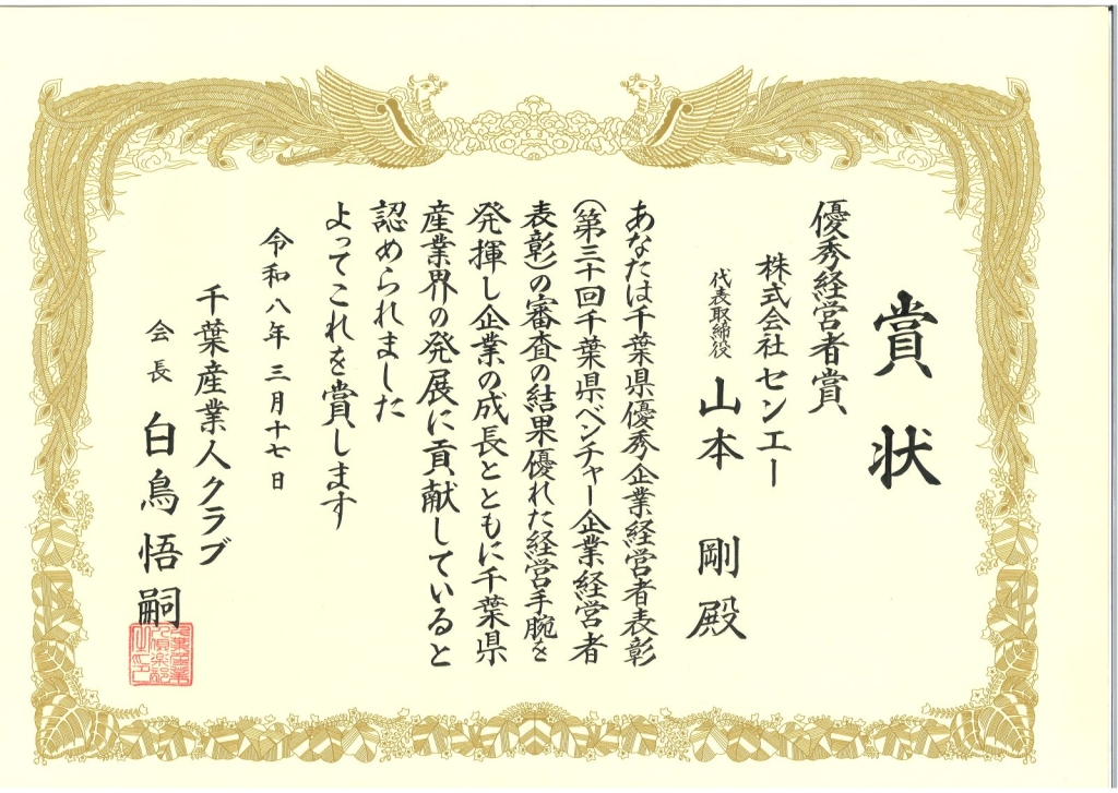 弊社代表が、千葉県優秀企業経営者表彰で「優秀経営者賞」を受賞しました。